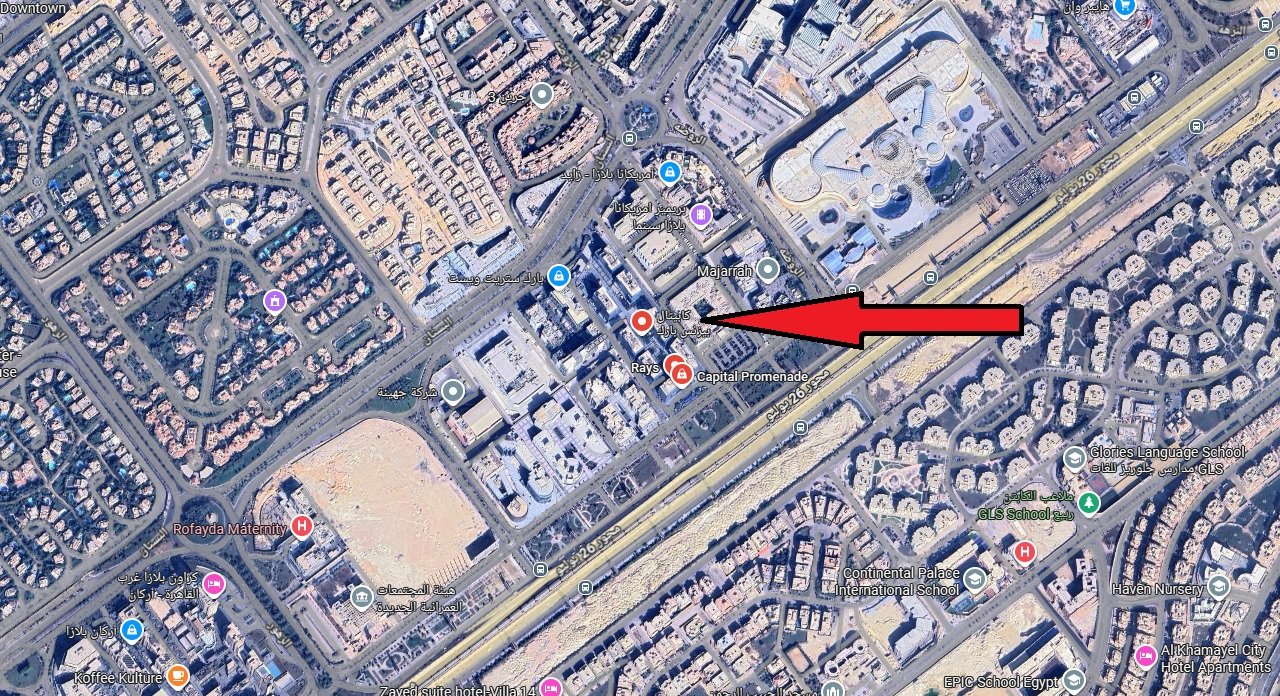 يقع مول كابيتال بيزنيس بارك الشيخ زايد بالقرب من جامعة النيل وميدان لبان.